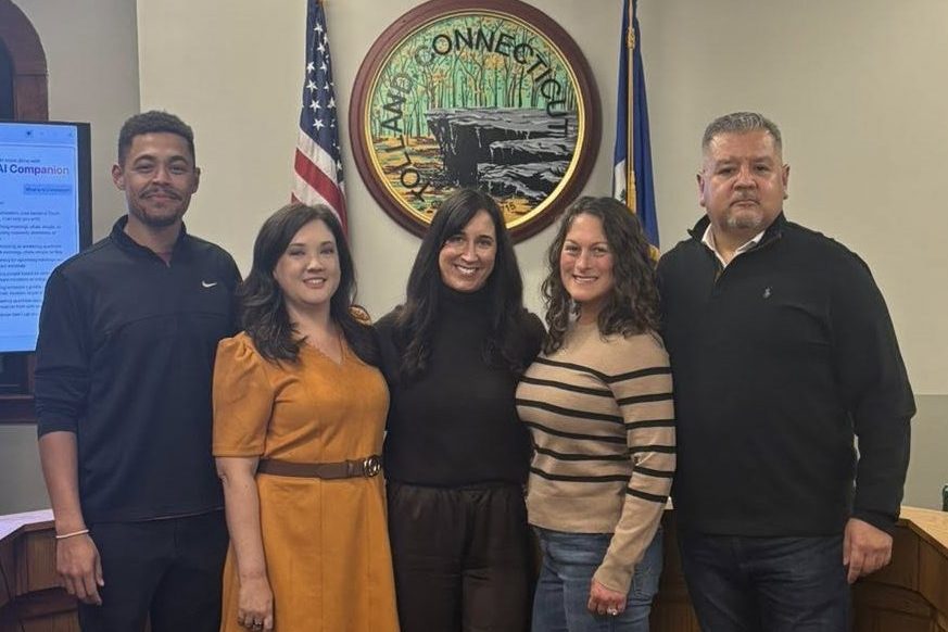 Mary Rose Duberek and Shane Jackson were sworn in to the Tolland Town Council on Feb 10, 2026, in a standing-room-only event.